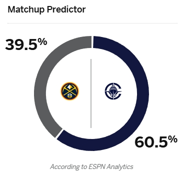 賽前,ESPN預(yù)測兩隊(duì)G4獲勝幾率:快船60.5%、掘金39.5%。